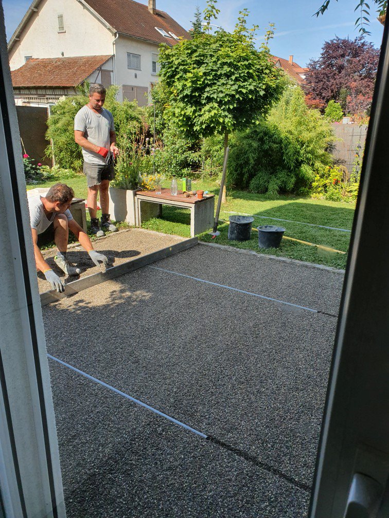 Terrasse mit Travertinplatten